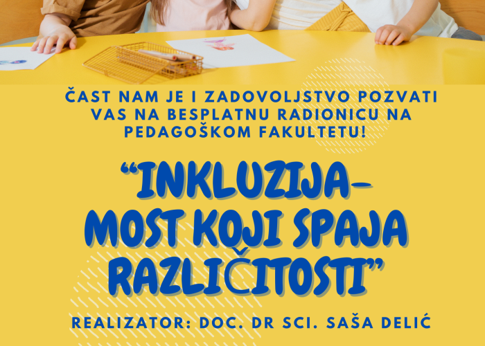 Poštovani, S velikim zadovoljstvom Vas pozivamo na besplatnu radionicu: "Inkluzija-Most koji spaja različitosti", koja će se održati 06.07.2024. godineu sa...